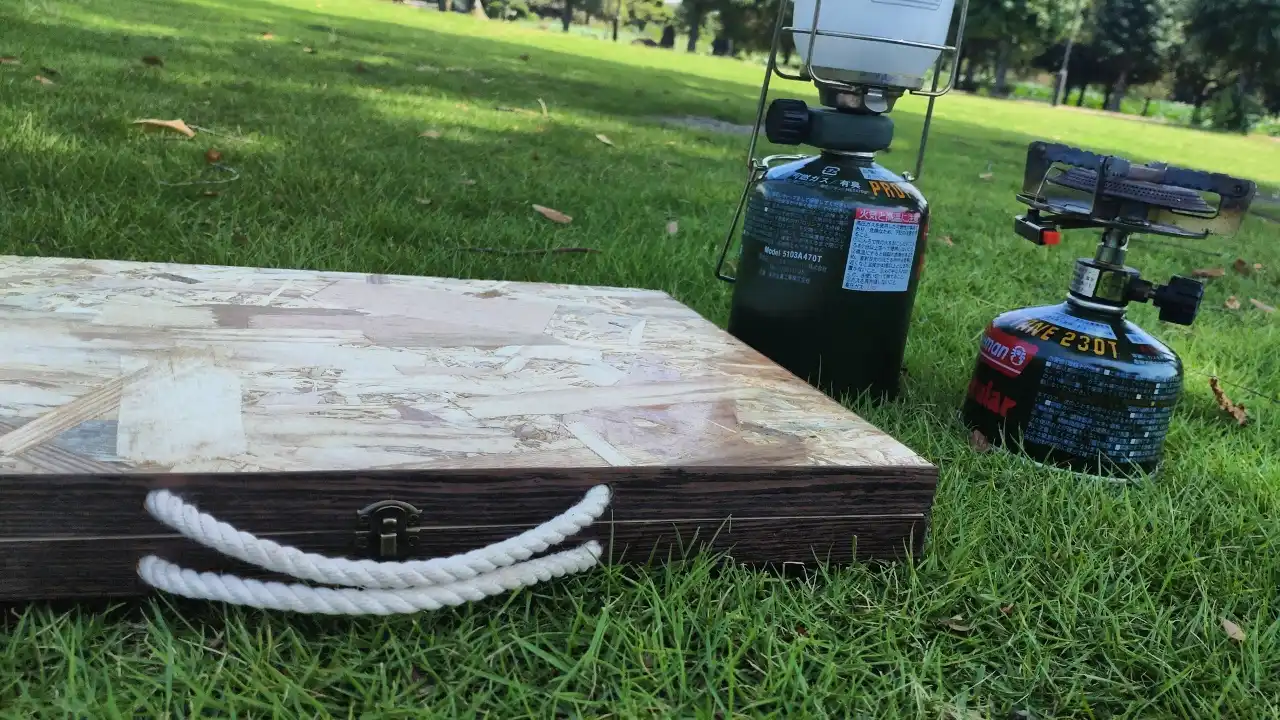 パーツを全て収納出来て、更に場所を取らないキャンプギアである事は必須要件と考えて製作してみました。また、OSB材は自作する方には入手も加工もしやすい素材ですし、そのまま使用しても味のある仕上がりになると思ってチョイス。